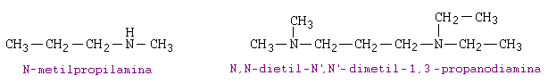 El método más extendido para nombrar las aminas es el radicofuncional que consiste que consiste en tomar como base el radical más complejo y añadirle el sufijo -amina .Los otros radicales se nombran como sustituyentes sobre el nitrógeno.