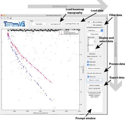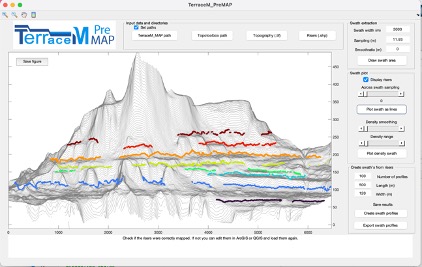 TerraceM is a Matlab tool that is constantly evolving and improving, the latest TerraceM release include three modules, for mapping and modelling marine and lacustrine terraces, designed to be used both as independent and complementary GUI’s interchanging data between them.