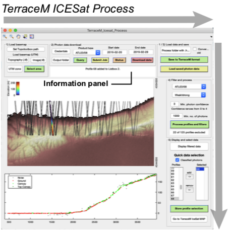 The TerraceM-ICESat module produces vegetation-free profiles ready for assisted machine-learning mapping into a graphical user interface.